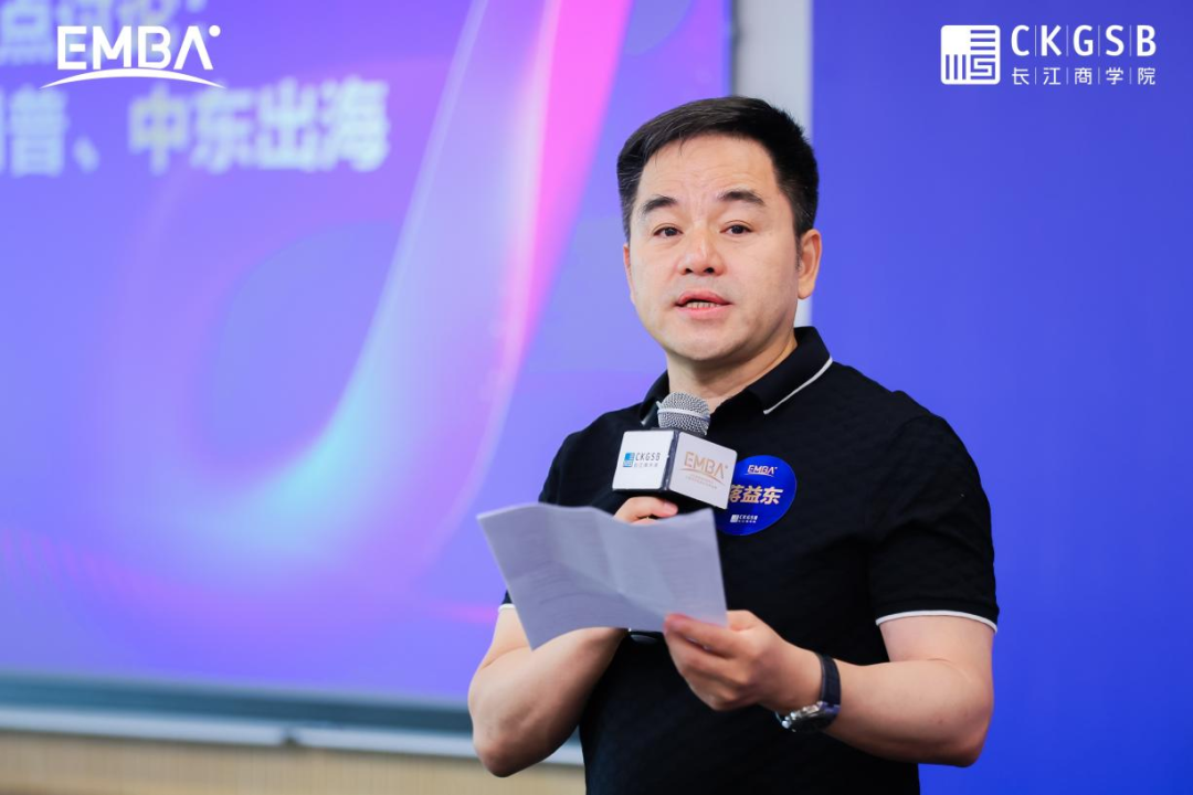 活动伊始,长江商学院EMBA30期校友、新疆校友会秘书长、乌鲁木齐市乐清商会创始会长、新疆兆龙集团董事长蒋益东开场致辞。他首先对长江商学院及与会嘉宾表达了诚挚感谢。回顾乐商40年发展历程,蒋益东会长以“四千精神”概括了乐清人从一把螺丝刀闯天下到立足全球的奋斗传奇。他强调,在数字化与全球化浪潮下,传承不再是简单的守成,而是将乐商精神与前沿科技、全球视野相结合,让传统焕发新生。