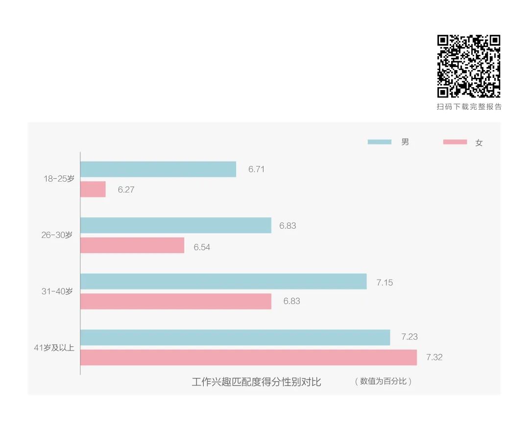 但女性群体随着年龄的增长,会更加能够认知并培养自己的兴趣点,从而对所做工作产生更大的兴趣。