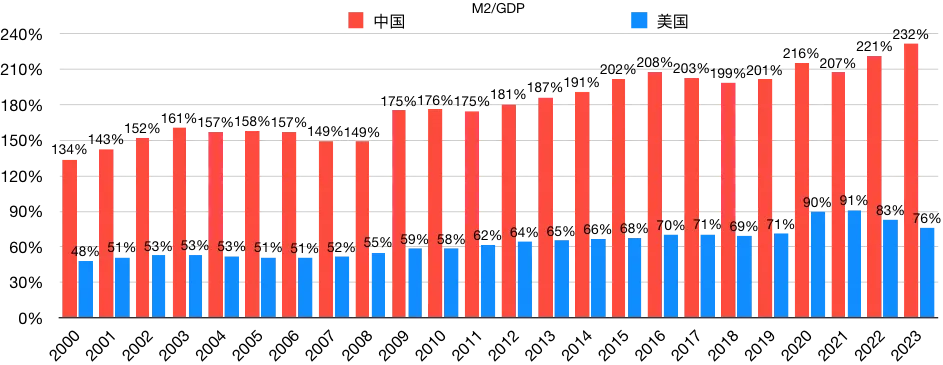 中国M2规模大的主要原因是中国更依赖于间接融资,即通过银行间接向企业和个人提供资金。而美国更倾向于直接融资,即通过证券市场向企业和个人提供资金。