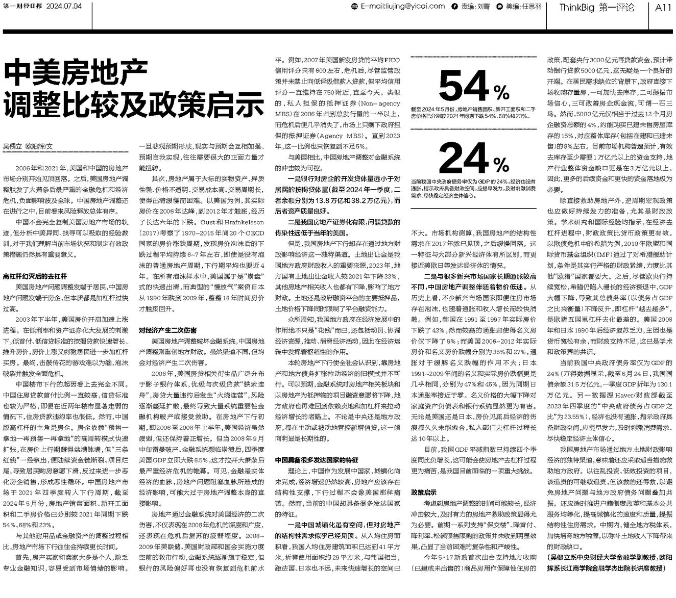 文章首发于:《第一财经日报》(2024年07月04日出刊)