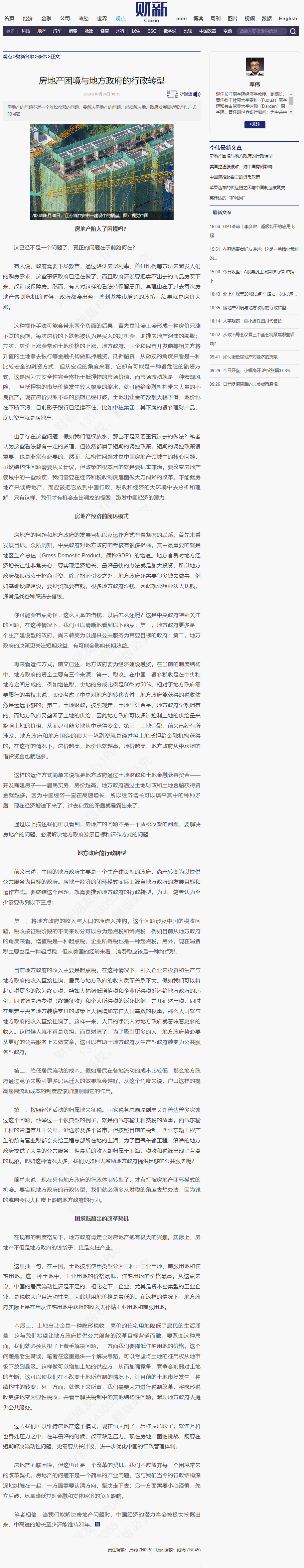 通过以上描述我们可以看到,房地产的问题不是一个放松收紧的问题,要解决房地产的问题,必须解决地方政府发展目标和运作方式的问题。