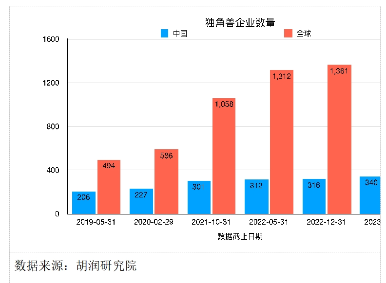 2023年,中国的独角兽企业新增24家;2021年11月至2022年底只新增了15家;2020年3月至2021年10月新增了74家。