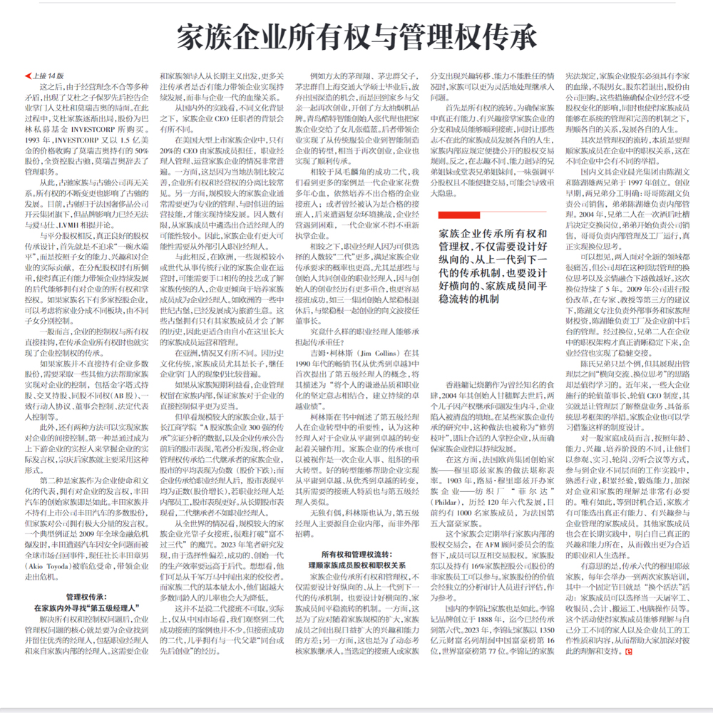 所有权和管理权流转:理顺家族成员股权和职权关系