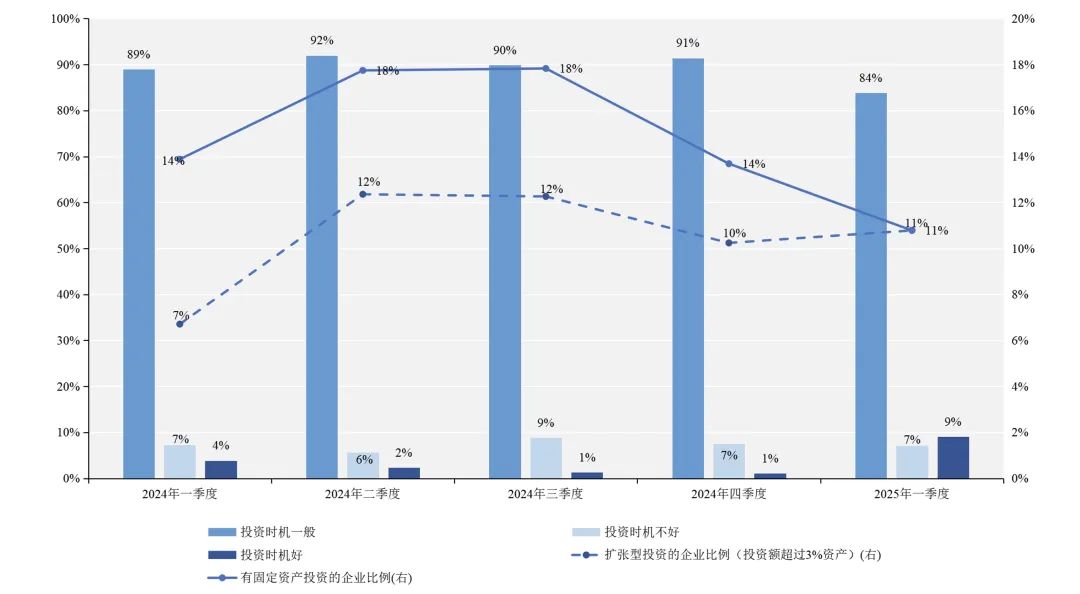 认为当前是投资好时机的企业比例由1%跃升至9%,增长幅度达8个百分点,创下近年来最大单季提升幅度。