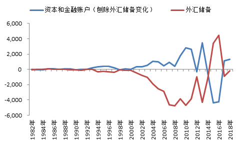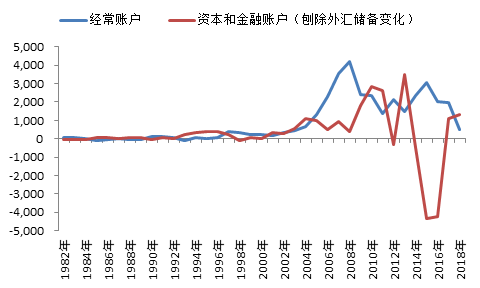 从图表1和图表2中我们可以看到,1994年是一个重要的分水岭。从1982年到1993年,经常账户以及资本和金融账户(刨除外汇储备变化)各有5次逆差,但从1994年开始,中国的经常账户就一直保持顺差至今,资本和金融账户(刨除外汇储备变化)也几乎发生了改天换日般的变化,为什么?因为在那一年,中国进行了外汇改革,人民币大幅贬值,而且长时间盯住美元。此后美元在大部分时间都处于弱势之中,人民币随之也处于弱势之中,这加强了中国的出口竞争力,也提高了中国对外资的吸引力。