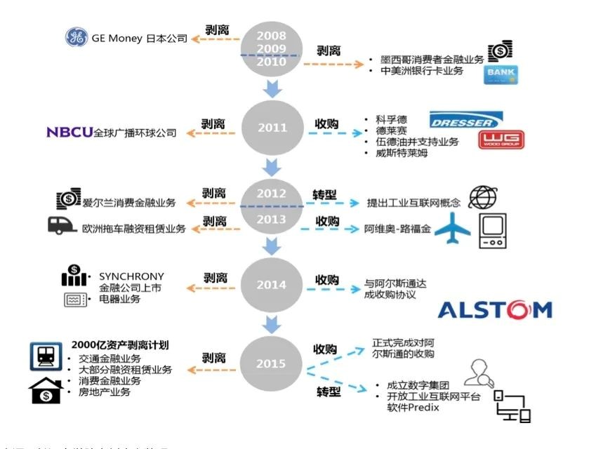 除了业务层面推动产业发展,GE金融也是GE集团从事战略收购的核心部门,每天有近200人的职责即寻找潜在的收购目标。从韦尔奇时代开始,GE金融承担了大大小小数百个并购项目。2000年,GE金融收入与净利润已分别占集团51%和41%,资产达3700亿美元,如果剥离出去将位列全美资产规模前十大银行。
