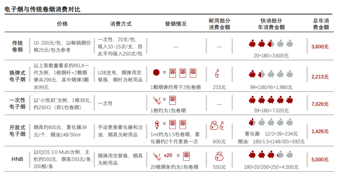 各大研究机构都曾对电子烟消费与卷烟消费进行过对比分析。其中之一如下图: