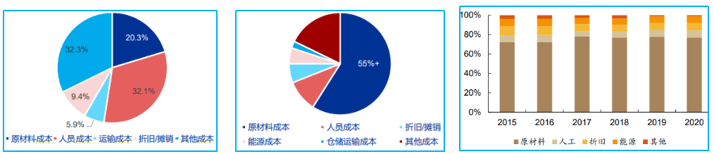 图表9:米其林、中国轮胎行业、玲珑轮胎,产品的成本结构