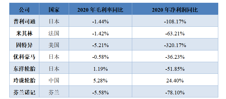 在2020年的疫情影响下,除中国轮胎企业外,其他国家轮胎企业普遍出现大幅亏损,世界轮胎市场格局更加快速变化。