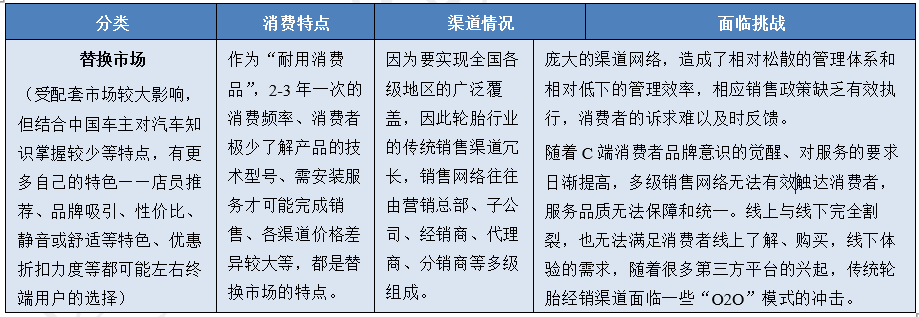 替换(零售)市场相对于配套市场而言,则是完全另一番景象。轮胎生产企业从来没有直接面对过终端消费者。