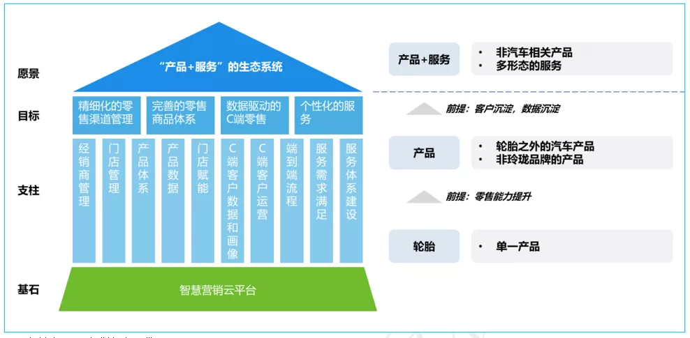 在这样的思路下,玲珑轮胎与腾讯云等机构充分合作,围绕轮胎在各级销售渠道及到最终消费者手中的这一流通链条,分多期打造了中国轮胎行业的首个“新零售”系统。