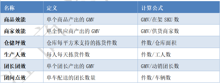 淘菜菜相关负责人表示:“相比于关注利润率、规模等等指标。在整个供应链环节,淘菜菜更关注商品效能、商家效能、仓储坪效、生产人效、团长团效、团间点效。”