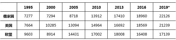 2016年,儒家经济圈GDP总量超越美国,重回世界第一;且根据国际货币基金组织的预测,这一领先趋势在未来几年中将得到延续。
