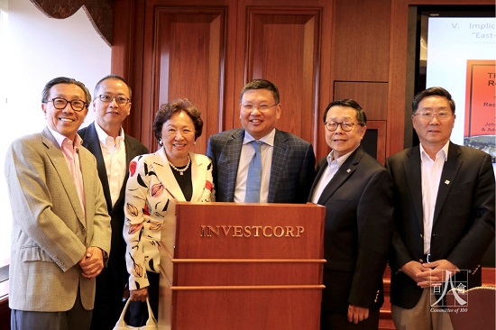 图2,从左至右:Investcorp首席投资长官童伟鹤、汉世纪海外投资管理有限公司资深合伙人关德铨、杨氏顾问公司总裁杨雪兰、长江商学院创办院长项兵、Carnegie Towers战略投资咨询合伙人邓兆祥、春晖投资顾问董事长汪大总