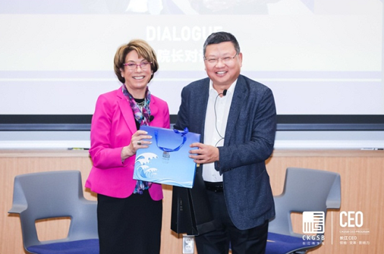 左为加州大学伯克利分校哈斯商学院院长Laura Tyson;右为长江商学院创办院长、中国商业与全球化教授项兵
