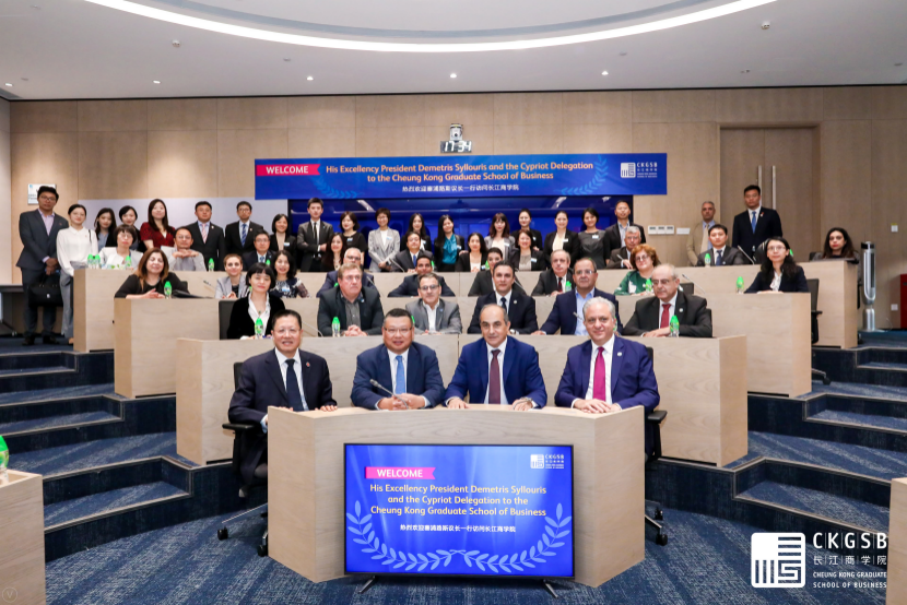 11月9日,塞浦路斯议长季米特里斯·西卢里斯携议员、官员、商务代表等高规格代表团访问长江商学院深圳教学点,并围绕中塞两国经贸往来、文化交流、科教创新等内容发表讲话。