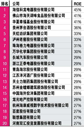我们的下一个问题是,在中国500强中,哪些企业的盈利性较强呢?是那些大的央企吗?这需要看看企业的ROE和ROA。(表2)(表3)