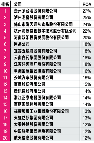 然而,假如我们细看其他子项的数据,就会发现一些更有趣的东西。销售固然很重要,因为它是企业的收入来源,是利润的基础。毫无意外,国有大企业成为了这方面的主角,尤其是央企。但一家企业的盈利状况与其销售状况却并非一个固定的线性关系。在市场中,研究人员一般使用净资产收益率(ROE)和总资产收益率(ROA)来分析一家公司的盈利能力。换句话说,这就是分析一家公司在限定资源的情况下,其盈利的能力。(表1)
