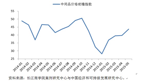 同时,这也与长江商学院BCI中的企业中间品价格前瞻指数保持了一致。“长江商学院中国企业经营状况指数”(Business Conditions Index,简称长江商学院BCI)衡量的是企业对未来6个月的经营状况预期,企业中间品价格指数指的是企业家对非消费品价格未来6个月走势的预期。指数以50为分界点,50以上代表改善或变好,50以下代表恶化或变差。在图表 2中我们可以看到,中间品价格前瞻指数自2014年1月以来长期位于50以下,2015年1月甚至仅有28.1。