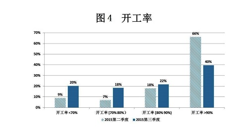 如我们在之前报告中指出,过剩产能的消化需要相当长的时间。今年三季度由于需求进一步萎缩,产能过剩的矛盾在恶化,高达56%的企业回答其产品在国内市场供大于求,反映国内需求不足的扩散指数为77。两者均为2014二季度有调研以来历史最高。此外,国内市场的情况比国际市场更糟糕,其扩散指数高出国际市场10个点,这与之前几次调查的结果相符。