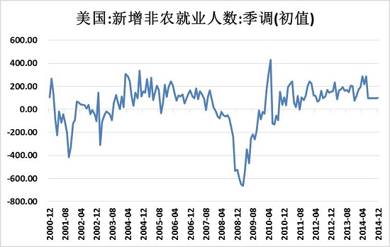在房地产行业调整的过程中,信用环境的紧缩打击了实体企业的融资能力,同时房地产行业的低迷传导到房地产行业的上下游,消费、投资的回落导致实际GDP增速回落,新增非农就业人数和失业率均发生恶化。失业率从2008年4月的5%迅速上升到2009年10月的10%,如图表5所示,新增非农就业人数(季调初值)从相对平缓的2004-2007年间平均约138万人,迅速下降到2009年3月的减少663万人,如图表6所示。