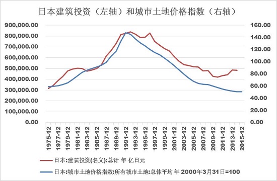 根据日本国土厅公布的调查统计数据,城市土地价格指数从1985年的91.5上涨到1991年的147.8,上涨幅度61%;建筑投资从1985年的约50亿日元上升到1991年的约82亿日元,上升幅度64%。如图表7所示。(由于日本没有类似美国被广泛采用的Case-Shiller房屋价格指数,并且Wind资讯可以查得的日本房价数据从1988年才开始,为了说明问题,我们采用日本国土厅公布的城市土地价格指数)