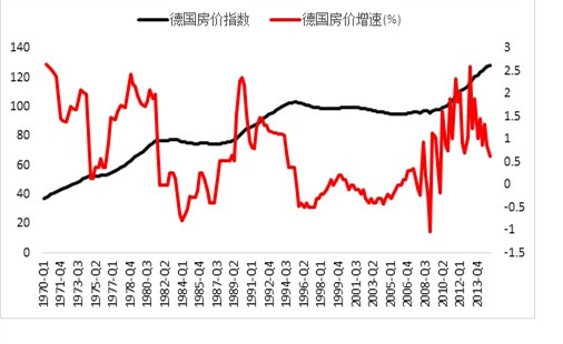 (图1:德国房价指数的三个发展阶段。数据来源:OECD Analytical House Price database)