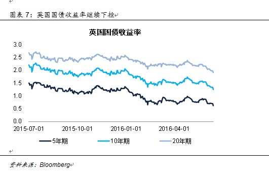 收益率环境的下降并未止步。如果英国退欧,欧洲的主要货币当局例如欧央行和英格兰银行都极有可能通过进一步宽松来对冲金融市场的剧烈波动风险,同时由于退欧的决定对于英国和欧洲的经济都将产生程度不同的负面影响,未来整体欧洲收益率环境的下降还将继续。但同时需要注意的是,英国的国债未来风险偏好将走弱,相对于德国国债等欧洲本土的“低风险资产”的价差可能会扩大。
