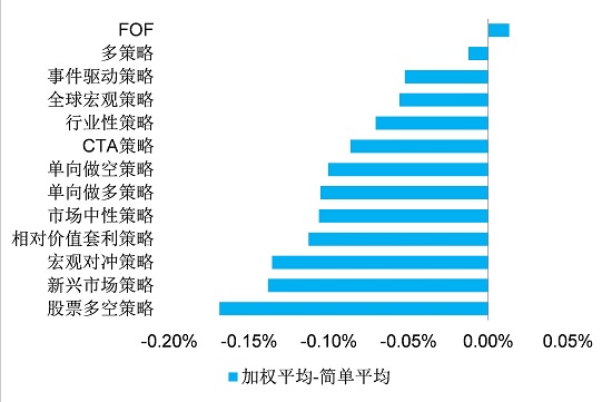 图表5:全球对冲基金上半年平均月度收益率+0.15%,但加权平均月度收益率-0.08%