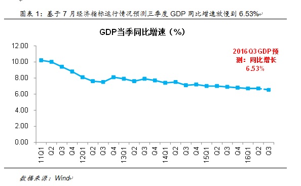 我们基于所监控的经济指标截至到8月底公布的最新数据对三季度GDP同比增速进行实时预测,预计GDP同比增速将放慢到6.53%,但这些数据主要更新到7月。随着财政政策的逐渐发力,8-9月的经济数据可能逐渐向好,我们将在9月底将这些数重新纳入模型以调整最新的GDP预测。