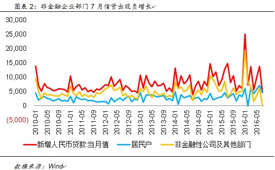 7月的信贷数据“爆冷”,单月新增人民币贷款仅4636亿元,虽然考虑到6月商业银行可能存在半年度末时点的冲贷款规模问题,但这一数字仍然创下24个月以来的新低。信贷规模总量的缩减还在其次,7月新增信贷的内部结构更加“触目惊心”,非金融企业部门单月信贷负增长,只有居民部门的新增信贷在勉力支撑,7月单月居民部门中长期信贷新增4773亿元,主要是与房地产市场相关的按揭贷款。