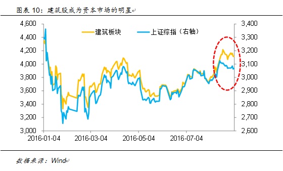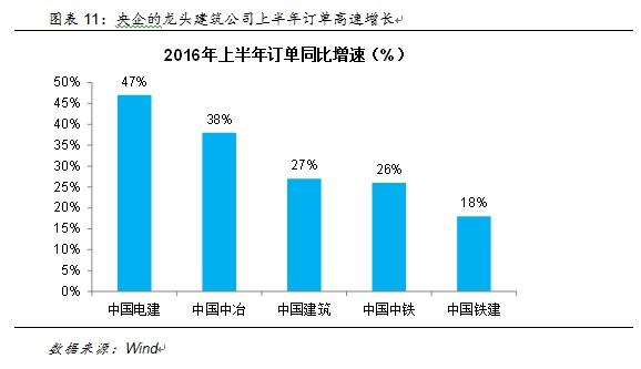 在这样的预期下,建筑板块上市公司在8月中旬开始成为资本市场的“明星”,建筑板块远远跑赢上证综指。而这样的财政加码似乎也能够得到微观验证,从建筑行业上市公司,特别是一些央企的建筑龙头公司的中报看,上半年的订单增速都在30%左右,中国电建更是接近50%。