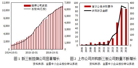 2016年A股上市公司并购新三板公司显著增长