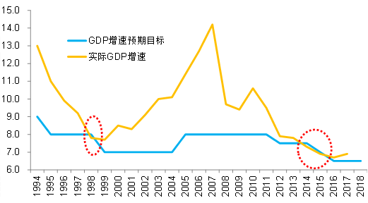 图表1:2018年的GDP增速预期目标和2017年持平