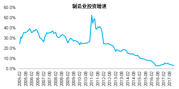 图表5:中国的制造业投资增速自2016年以来持续低迷