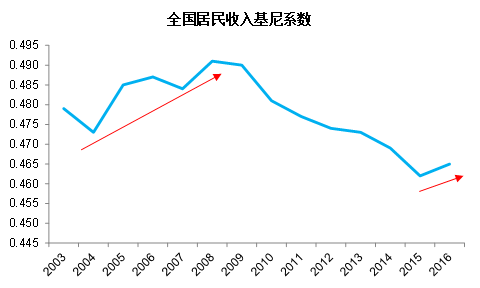 图表7:2016年整体收入分配的不均衡水平又有所抬头