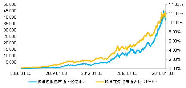 图表3:腾讯控股已经成为香港资本市场的中流砥柱