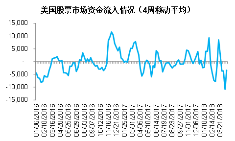 对于发达市场的股票资产,我们较为偏好欧洲股票,除受贸易战本身影响比美股更小外,更加便宜的估值也提供了更好的性价比。目前欧洲市场主要股票指数交易在13-15倍的静态市净率,而标普500则交易在22倍的静态市净率,同时如果中美贸易冲突深化,美股上市公司盈利将面临更大的风险。此外,可能走弱的美元指数也为海外投资者交易美股提供了汇兑损失的风险。同样以EPFR追踪的基金流向数据观察,可以看到美国股票市场自2月初巨震之后持续面临资金的净流出,特别是贸易冲突开始之后,美国国内股票市场在三周内流出了496.6亿美金。