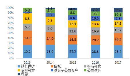 “泛资管”时代下不同主体资产管理规模的趋势分析(万亿元) 资料来源:Wind