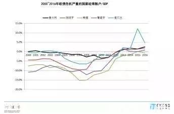 2008年金融危机后,欧债危机爆发。在此期间,欧洲国家一直处于比较混乱的状态。我们重点分析受到欧债危机影响最为严重的国家,如意大利、西班牙、希腊、葡萄牙和爱尔兰。如上图所示,这些国家的经常项目/GDP数值几乎长期为负值,说明这些国家在大量进口,增加负债。经常项目变为正数,说明这些国家的出口越来越多,越来越有有竞争力。从负转为正的过程中,这些国家从债务危机中慢慢恢复过来,欧债危机才得以缓和。