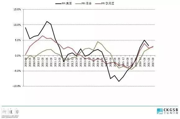 我们先看发达国家的情况,2014年-2015年时期,发达国家(美国、日本等)出现通货紧缩,企业盈利能力被大大削弱。直到2016下半年,全球PPI指数重回正轨,企业恢复盈利。