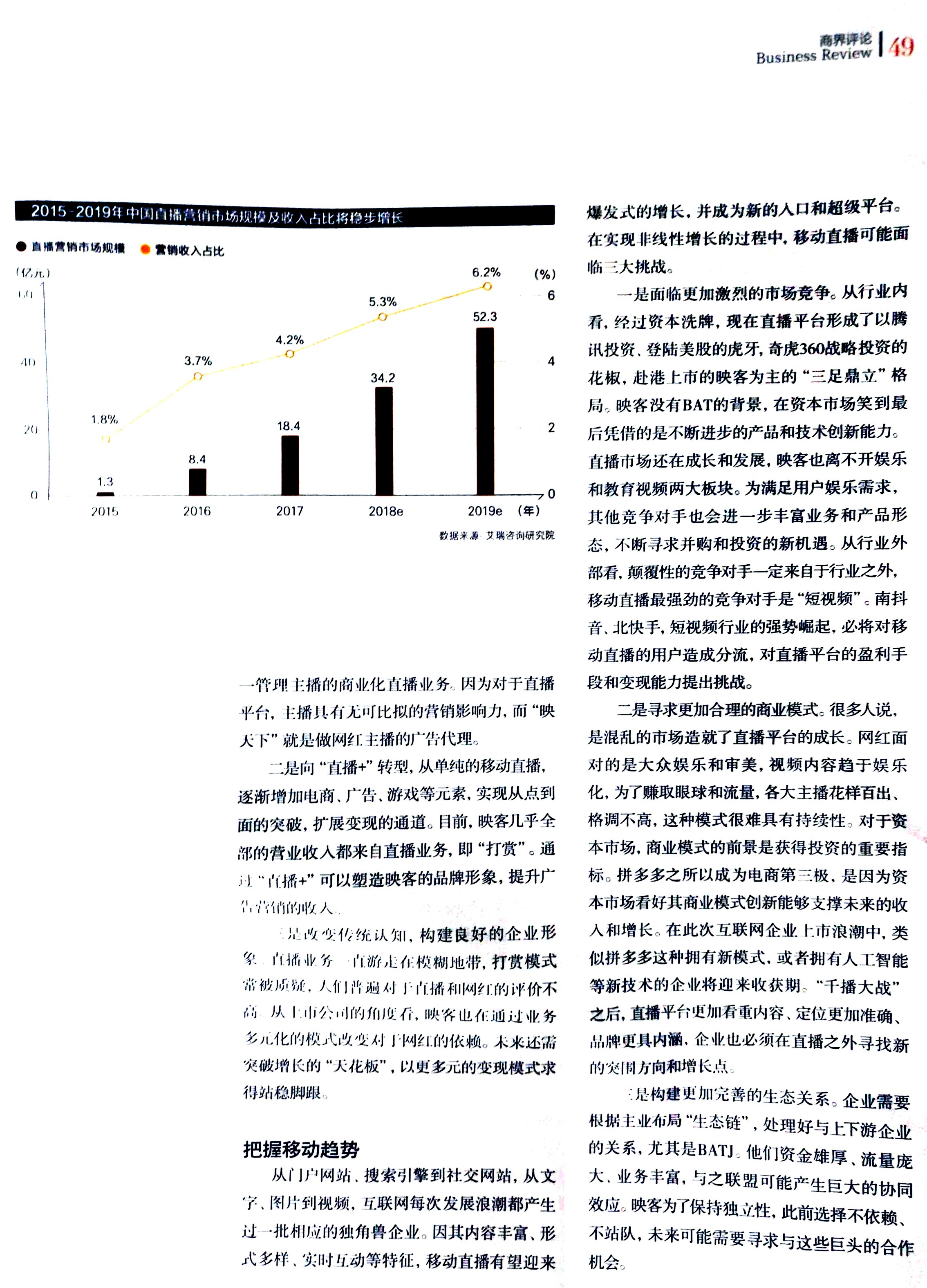 打破直播单一盈利模式,逐渐增加电商、广告、游戏等元素,实现从点到面的突破,是未来扩展直播变现能力的有效通道。
