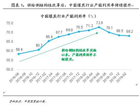 煤炭行业可以看作供给侧改革的一个成功案例。在发改委和能源局去产能计划的持续推动下,中国煤炭行业过剩落后产能不断出清,全行业产能利用率持续提升,最高在2018年二季度达到72.9%。资产利用效率的提升带来行业整体盈利能力的复苏,根据我们的测算,中国煤炭行业ROE(净资产收益率)水平在2015年供给侧改革之前最低达到1.9%,而随着产能利用率的提升,这一指标回升到2017~2018年的11%~12%,已经恢复到2005~2006年上一轮经济周期的较高水平。
