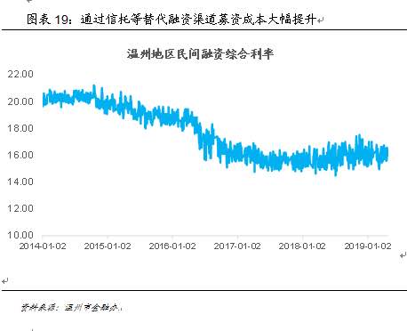 更有甚者,部分民营企业和小微企业因为担保和抵押品缺失问题,只能从融资成本更高的市场进行融资,例如民间借贷。温州市金融办披露的温州地区民间融资综合利率可以作为此类民间借贷成本的代理变量,一窥从这一市场融资企业的成本。