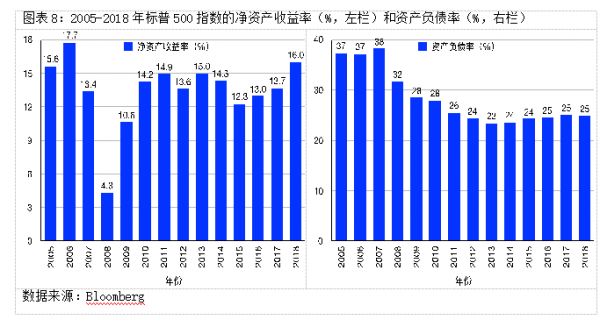 图表8的右栏列出了标普500指数在2005-2018年间的资产负债率。