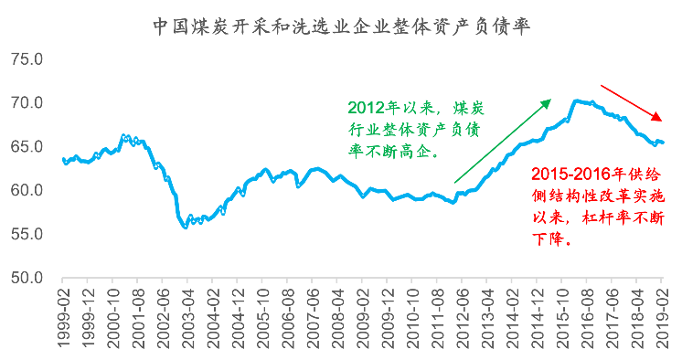 煤炭行业可以看作供给侧改革的一个成功案例。在发改委和能源局去产能计划的持续推动下,中国煤炭行业过剩落后产能不断出清,整体全行业产能利用率持续提升,最高在2018年二季度达到72.9%。资产利用效率的提升带来行业整体盈利能力的复苏,根据我们的测算,中国煤炭行业ROE水平在2015年供给侧改革之前最低达到1.9%,而随着产能利用率的提升,这一指标回升到2017-2018年的11-12%,已经恢复到2005-2006年上一轮经济周期的较高水平。与此相伴的是企业资产负债结构的好转,企业盈利之后整体偿债能力和意愿上升,资产负债表已经开始修复,行业整体资产负债率从2015年高点的70%左右下降到65%左右,随着盈利持续改善预计未来仍有去杠杆的空间。整体看,随着供给侧结构性改革的深入,中国的煤炭行业已经重新焕发生机。