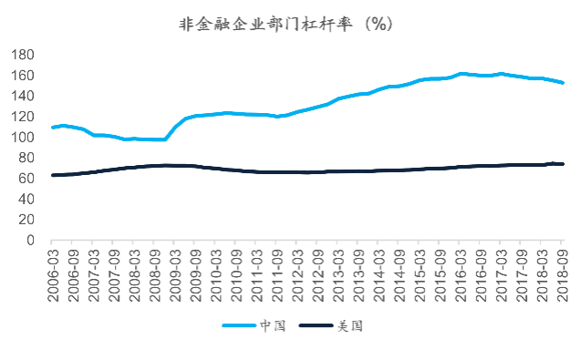 高杠杆持续成为中国企业面临的挑战,根据国际清算银行数据,截止到2019年三季度,中国非金融企业部门杠杆率为152.9%,而美国则为73.9%,中国是美国的两倍有余。事实上,中国政府在2015年底已经将包括去产能、去库存、去杠杆、降成本、补短板在内的“三去一降一补”五大任务作为供给侧结构性改革需要解决的最大问题。