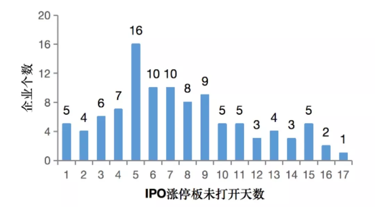 图2、2018年IPO涨停天数的频数分布