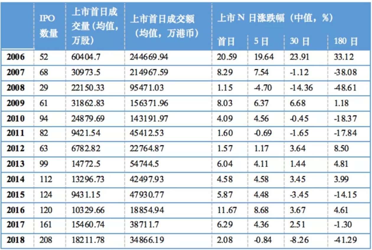 港股市场IPO首日及后续的市场概括