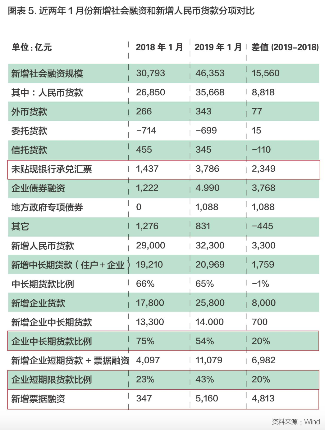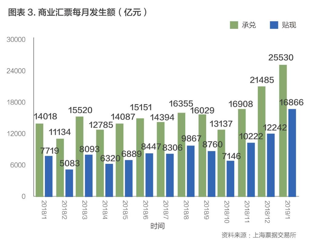 2019年1月,天量的金融数据引发市场关注,该月人民币贷款增加3.23万亿元,同比多增3284亿元,其中,票据融资额新增5160亿元;社会融资规模增量为4.64万亿元,同比多1.56万亿元,新增规模中,未贴现银行承兑汇票达到3786亿元。